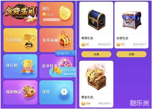 此外,点击菜单,【领礼包-答题礼包】,可通过小程序内的金币自行兑换礼包。