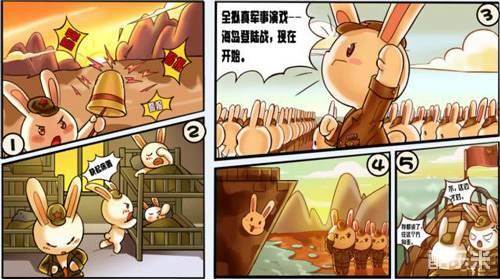 日出东方,天边露出了一抹鱼白,一只兔子拉响了战斗警报,打破了黎明的沉寂。宿舍中,沉睡中的军兔们被警铃惊醒,看吧!宿舍里有起床揉眼的;紧张穿衣服的;还有光着大白肚皮叫醒同伴的;虽然紧张,但是每只兔子都是那么有条不紊。片刻的功夫,军兔们已英姿飒爽的排列整齐,在操场上整装待发了。首长宣布:全拟真军事演习——海岛登陆战,正式开始!