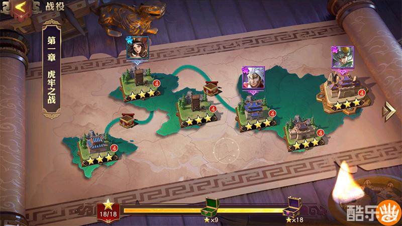 在徐徐展开的长卷上坐落着城池,在烛火摇曳下透着历史的厚重感。这里尽心还原了三国历史上的经典战役,你会跟随着不同的主公去攻破虎牢关、火烧濮阳夜袭曹军、徐州勇战刘备……每场战役都从不同的视角出发,带来最原汁原味的游戏体验。