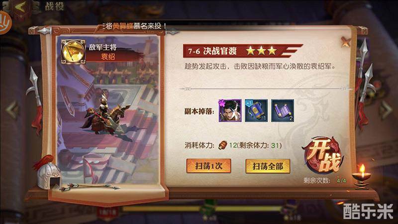 在战役玩法中,玩家成功攻破关卡就会掉落打造主将装备的材料及军事修炼计谋的道具,更可获得珍稀的主将碎片!同时,累计一定的星数时可以开启宝箱,获得海量元宝、银两和军功等资源。