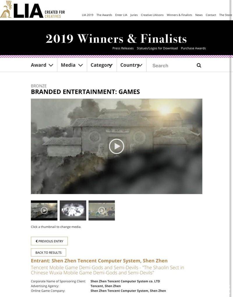 《天龙八部》手游少林寺文化跨界合作项目,自传播开来,便掀起热议,此番一举夺得伦敦国际广告节铜奖,影响力再上一层楼!