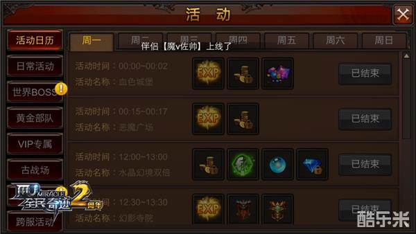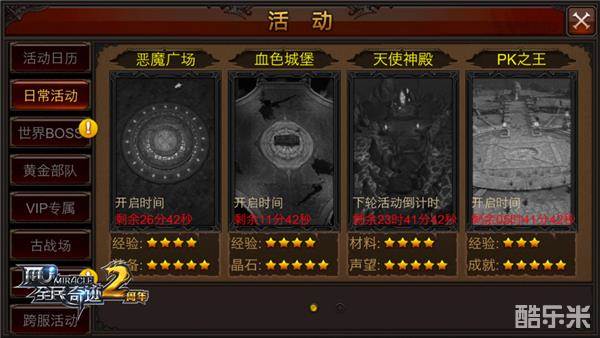 在跨服技术尚未出现,跨服功能尚未开放之前,服务器内部的日常活动一直都是勇士们每天最重要的冒险内容。虽然一键领取功能能够领取到3次恶魔广场与血色城堡的奖励,但对于大多数高玩们来说,剩下的次数却还需要逐一完成;而天使神殿、PK之王与阵营战,虽然仅仅是服务器内部的小范围竞技,但凭借着不菲的奖励额度,仍旧是如今勇士们日常中不容错过的选择。