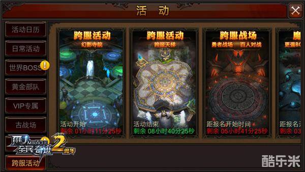 相比于服务器内部的日常活动,在跨服技术出现之后兴起的各式创新跨服活动,内容与奖励无疑就要丰富的多了。从周一到周日,从幻影寺院到领地采集,八大跨服活动每天都会有几项火爆开放,可以说,跨服活动是现如今《全民奇迹MU》之中热度最高的内容之一。
