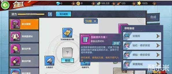而打造装备,则需要【装备设计图纸】、【核心打造材料】、【迅捷元气】以及【性能提升方案 I】等重要的道具和材料。