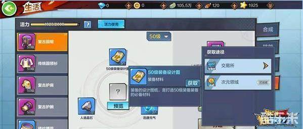 以上这些材料,大多数都可以通过参加【次元领域】活动获得,或者前往交易所用金币换取。而【核心打造材料】主要通过【生活技能-采矿】获取,【性能提升方案 I】则需要通过商店或团队副本获取。