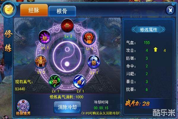 通过修炼不同的经脉和根骨可提升玩家不同的能力,总共7个属性提升方向。根骨是提升战力的主要来源之一,是大R玩家的追求!