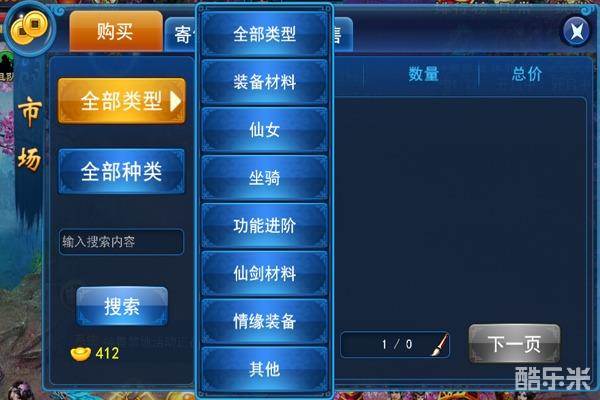 市场会按物品的价格排序,玩家可以直接在众多物品中掏自己需要的,当然这样无疑会浪费大量时间,因此,市场搜索功能出现了!玩家可以先选择物品的大类型,找到对应系统的消耗品,在这些类型中搜索所需,更可以在大类型中搜索更小的分类,另外也可以直接输入物品名字进行精确查找。