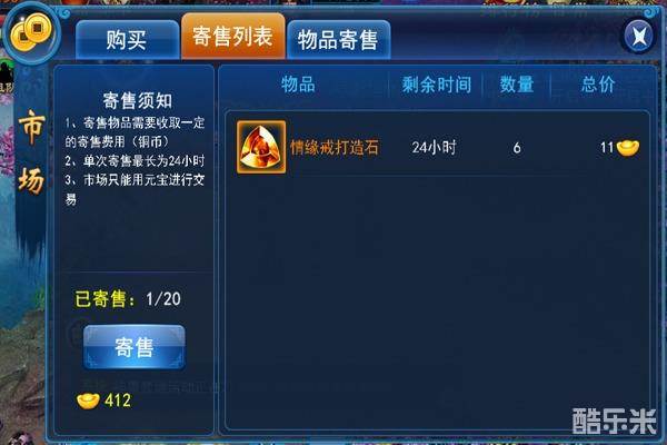 玩家可以再这里找到自己寄售物品的信息,也可以做下架处理,同一时间最多只能寄售20件物品