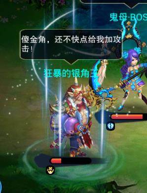 3、如果银角先死了,那么BOSS会给全体释放吸引伤害技能,此时玩家无法再使用技能,只能普通攻击打鬼母