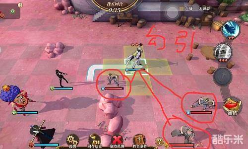 这时Mr.4打米霍克也不用怕,因为有战国被动奶血量,可以补回来,补不够,乔巴再补回来,这里基本乔巴只补血米霍克,战国受到的小怪伤害很低的,Mr.4不会出手打人。这样可以4个回合杀死Mr.4。若人物输出高的话,可以3回合杀死。打死Mr.4后,角色再向上移动到米霍克站的格数那一行,再来打跑过来的小怪。