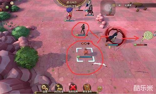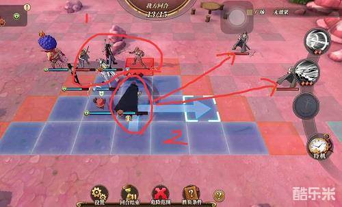 清完过来的小怪后,战国往右上角走,去勾引小怪出来打战国。如果你不去勾引小怪,而是兜一圈打到Miss.星期一的话,因为有被动效果,15个回合内很难把小怪清理完毕,他背后还有2个元素怪,2只在一起要团灭的节奏,所以一定是分开来打,一个个来击破。