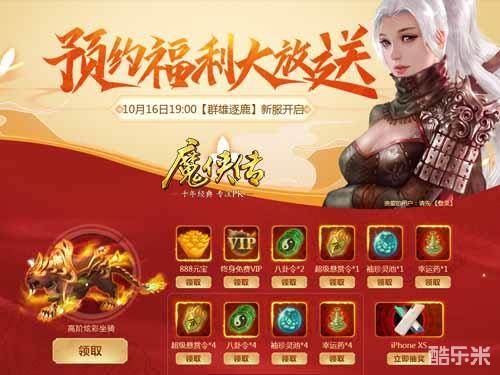 《魔侠传》新服“秦时明月”11月13日晚上19点即将开启,现在预约新服必送888元宝、发光坐骑、稀有游戏道具。开服当晚登录游戏升至两级,还可抽取点卡、月卡、iPhone手机!