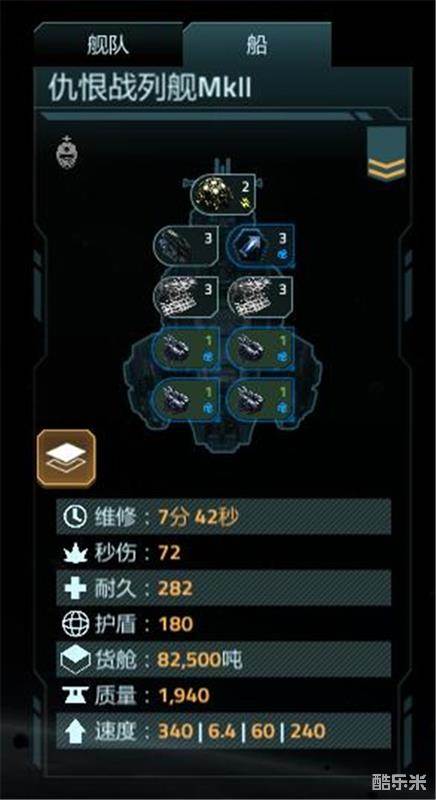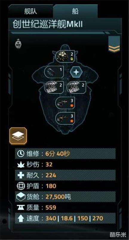 创世纪巡洋舰MK2舰队的配置非常简单:能量护盾2、高速推进器1、塑钢2X2、散射导弹3X2,这样的配置足够让你在星球内自动战斗20级及以下等级的蓝图货船。