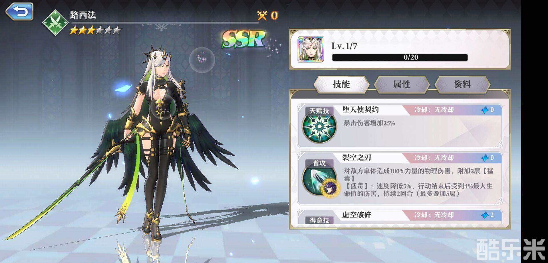 | 天赋技能 | 堕天使契约 | 暴击伤害增加25% |