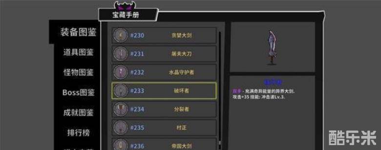 武器解析:这把武器的攻击力有35,但是它更为全面,有着非常优秀的冲击波技能,能够攻击到前方扇形区域内的敌人,非常适合清理小怪哦。