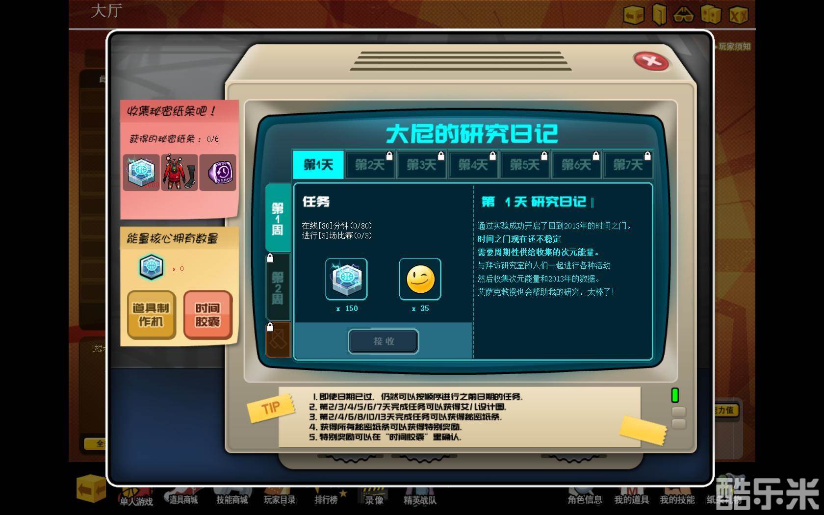 玩家们可以通过大尼的研究日记获得能量核心以及奖励,包括艾儿的设计图以及秘密纸条,秘密纸条可以兑换套装以及专属荣誉。