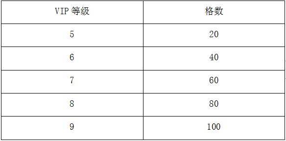 本次新增了VIP高级仓库,VIP5及以上玩家可开通使用,每个等级段都增加20格的数量,VIP普通仓库将在VIP7等级段开始增加格数,每个等级段增加12格。