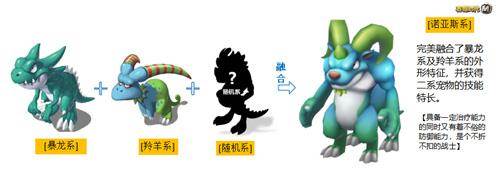 融合宠,是基于初代宠物融合而成,是外形技能双继承的完美产物,它就像是一个拥有父母最优基因的孩子,吸收了这些基因所融合出的宠物集合了参与融合的所有宠物的优点。炎龙融合自飞龙系与葫芦系,飞龙系最擅治疗,拥有短小的前肢,背后有着不断扑腾的小翅膀;葫芦系最擅长辅助,虽然不会飞,但五短身材加上蠢萌外表也让它这么一个可爱天然呆吸引到许多人的喜爱。最终形成的炎龙,既有翅膀能飞行,又有可爱呆萌的外貌,具备强力治疗能力的同时又擅长辅助,简直是完美的产物。