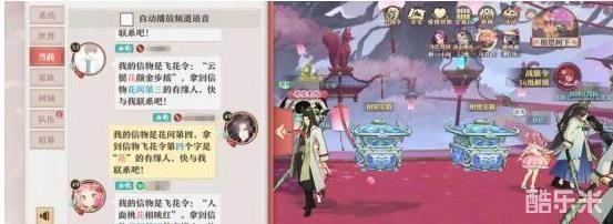 前面苏苏就有提到飞花令是组队的重要信物哦,所以现在苏苏接着告知大家飞花令的组队方式。以花间第一为例,当抽到花间第一时。打开聊天频道,找到当前频道,找到诗的第一个字是花的人,两个人组队即可。