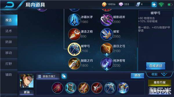 破甲弓:高额的护甲穿透配合上狄仁杰的爆炸伤害,能够对敌方前排也造成极高的伤害,冷却缩减降低狄仁杰的技能冷却时间,让他可以更加频繁的使用技能打伤害。