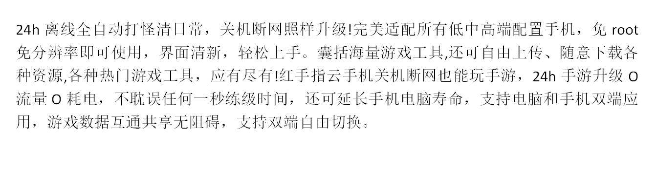 红手指辅助离线挂机,专业全能手游辅助挂机工具,安卓免root24小时帮助玩家轻松自动挂机主线、剧情、日常副本自动刷,让红手指帮你24小时任务,解放你的双手。