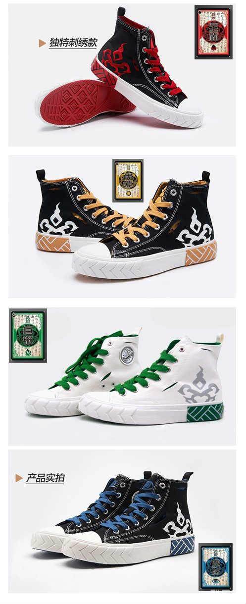 这款联名款帆布鞋采用经典帆布鞋面,刺绣工艺,双层设计,同时融入了三国杀文化元素,分为主公款、忠臣款、反贼款、内奸款等四种,经典的颜色搭配,时尚的外形设计,兼顾了外观潮流与穿着舒适,经典面料结合了街头运动元素,可谓是一举击中年轻人的内心,成为他们表达潮流个性态度的最好利器。