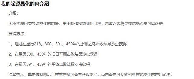 其实在游戏中每个时代的每张地图中最少都有一个晶化沙虫的刷新点,想要刷晶化的肉其实并不是很难,但是每次击杀晶化沙虫都只能获得一个晶化的肉,而驯化一只起源级宠物大概需要500个肉。所以小编不太建议大家将前期宝贵的升级时间浪费在沙虫身上。