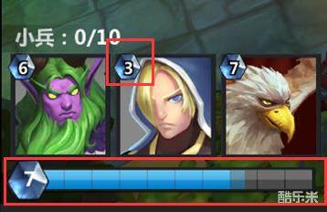 下面代表蓄的士气值,而小兵上面的数字代表每一个召唤所需的士气值。小兵的上限是10个。不是一共拖动小兵10次哦,是每次召唤的小兵总数加起来一共10个。