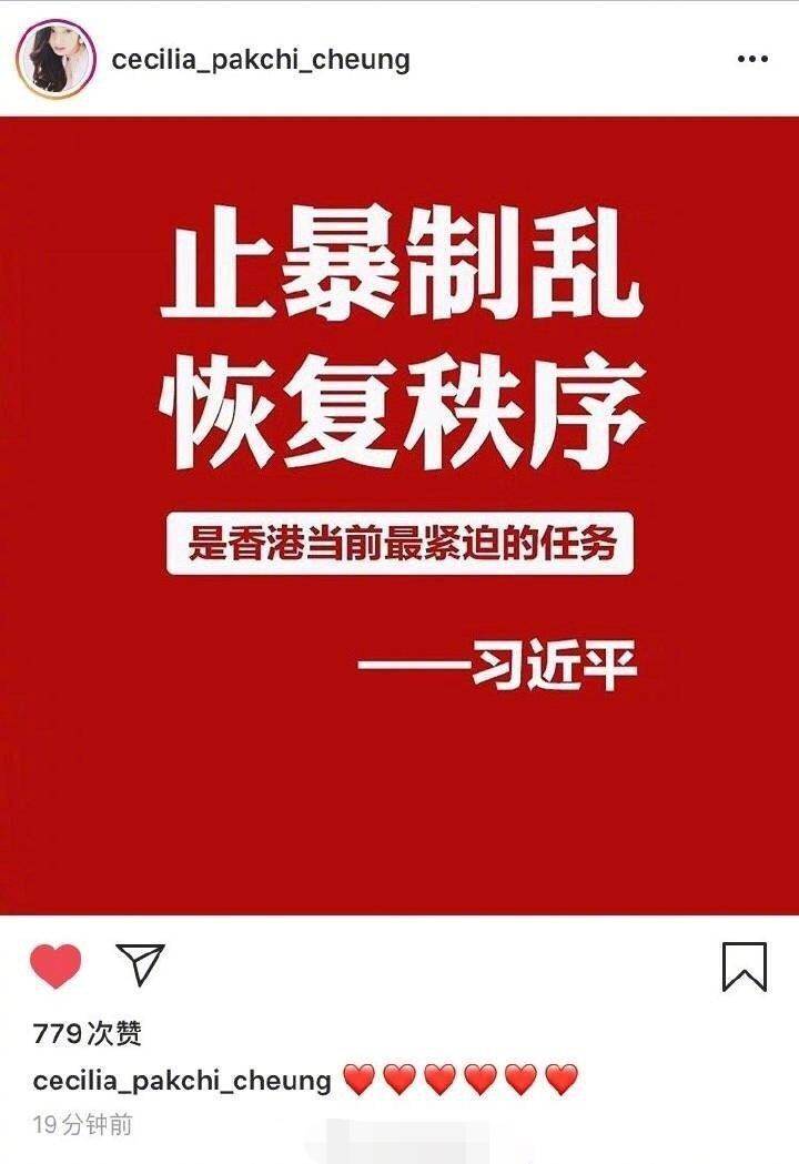 香港第一个在INS发声的大牌明星!张柏芝:止暴制乱!