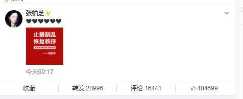 香港女演员、金像奖影后@张柏芝 今天(15日)在国内外社交平台同时发声,支持“止暴制乱、恢复秩序是香港当前最紧迫的任务”