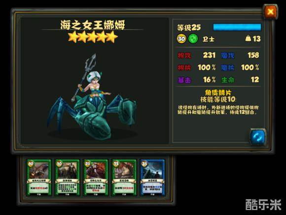 看看属性,这位女王大人物防魔防全是100%?!这怎么玩?螃蟹的壳真的有这么硬嘛!