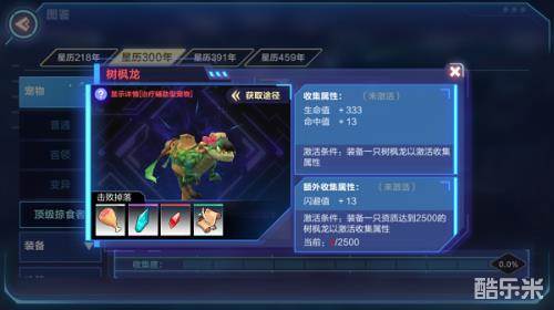 在星历300年的旧日平原的南部矿坑可以遇到树枫龙,前往该位置搜寻树枫龙,找到之后与其战斗,当树枫龙的生命值低于40%的时候使用物质枪将其捕获即可获得宠物;