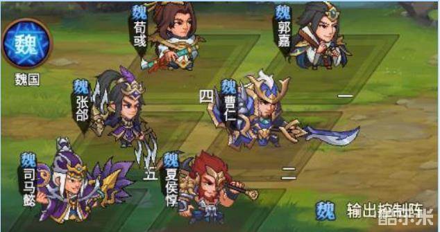 ·郭嘉沉默敌方前排,曹仁眩晕敌方纵排,夏侯惇反伤并且具备回血能力,荀彧高效治疗,张郃无敌保护,司马懿输出收割。