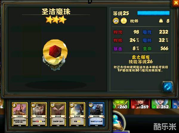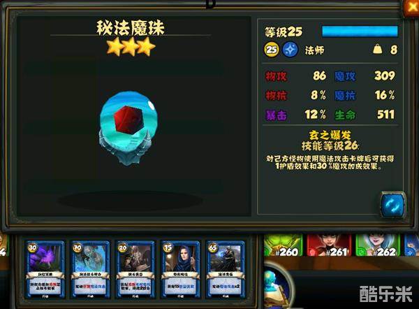 魔珠也是挺好用的一类怪物,其被动技能是对己方怪物使用魔法攻击卡牌后可获得1护盾和魔攻加成效果,初始获得5%魔攻加成,满级26级可获得30%魔攻加成效果。