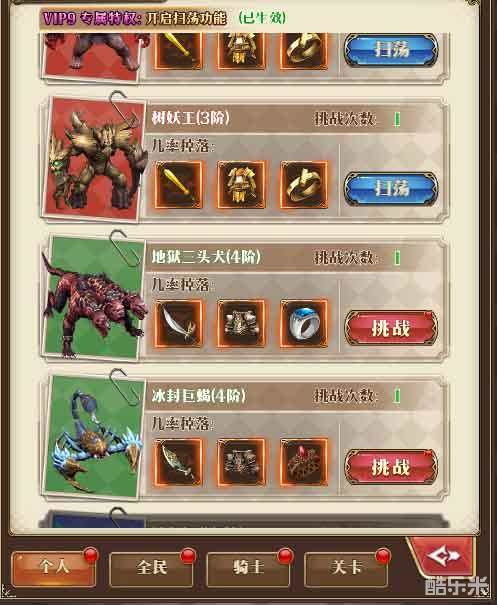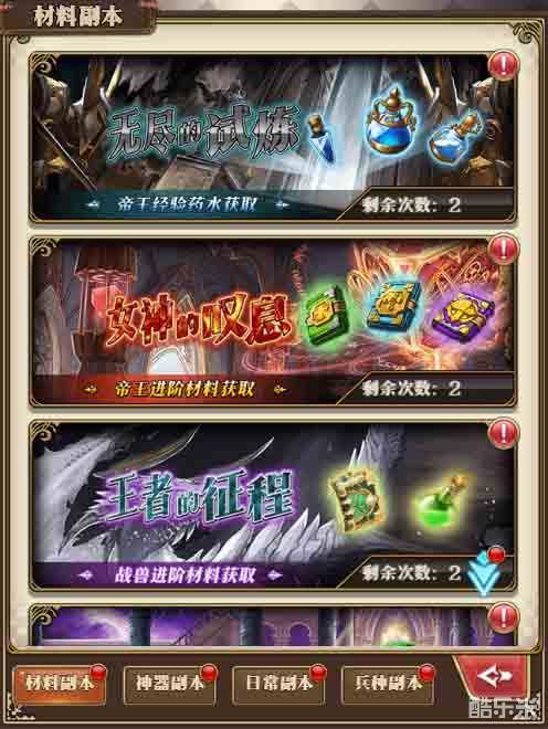 要想提升角色及帝王的综合实力,我们需要大量的升级及进阶的材料。这个时候,就是我们在材料副本当中大展身手的时候了!材料副本是获取各种升级、进阶材料的主要途径。其中包括了帝王升级材料、帝王进阶材料、战兽进阶材料等多个副本。除此以外,我们还可以通过BOSS战获取极品装备,游戏当中具有个人BOSS、全民BOSS、联盟BOSS、骑士BOSS以及关卡BOSS等多种BOSS,每种BOSS均会随着玩家等级的提高而不断开放更高等级的BOSS。