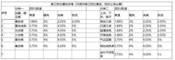 2. 完美属性装备--武器、玉佩、戒指的第一附加属性是攻击,上衣、下衣、裤子的第一附加属性是血量上限
