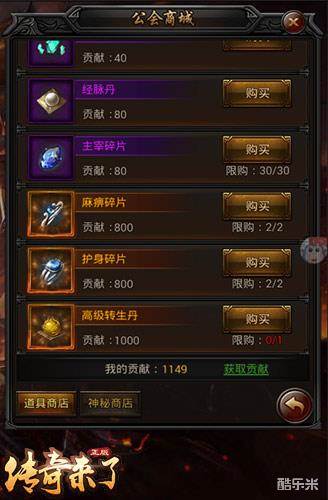 而除了那些打打杀杀的玩法之外,在9377《传奇来了》的特色公会系统当中,还存在公会商店以及公会仓库这些地方。在公会商店里面,勇士强者们可以通过消耗贡献来兑换到主宰碎片、麻痹碎片、高级转生丹等稀有材料道具。而在公会仓库里,勇士强者们则可以发现宝箱,抢红包等等,满满的都是福利!
