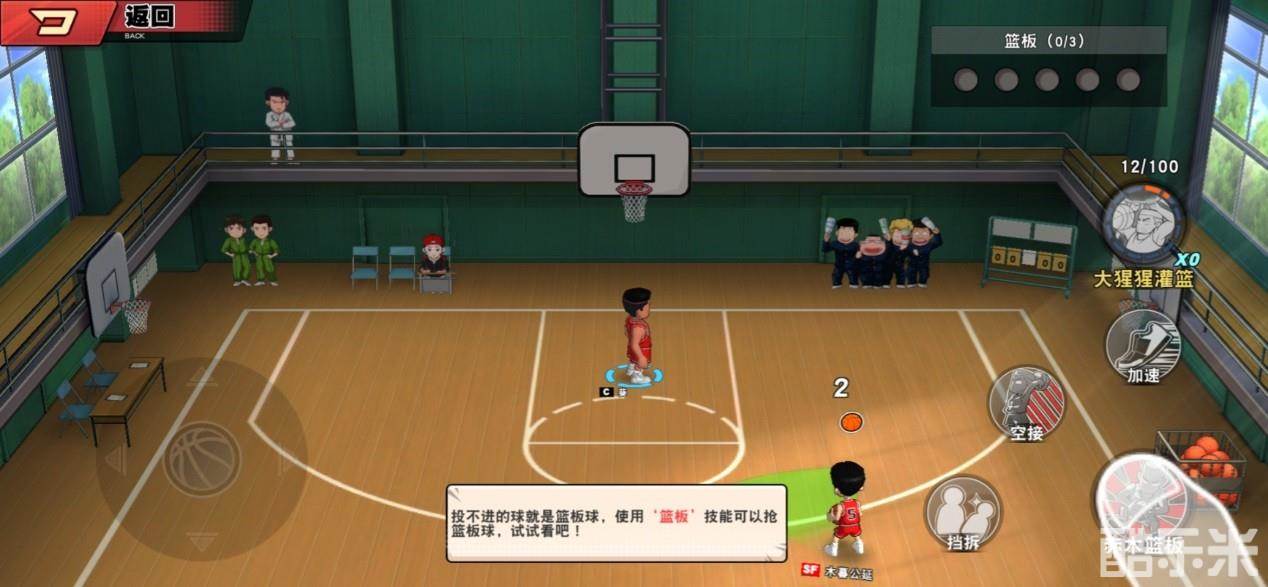 篮板的保护意味着二次进攻和反击的可能,在攻防两端都有重大意义,所以熟悉篮板操作也是新人们需要做的功课。在游戏里的进阶教学里,有针对篮板的强化训练。我们可以在训练中先体验各种篮板球的落点位置及篮球反弹的高度等等,尽可能的熟悉赛场环境和手感。目前游戏里,樱木冲抢篮板的效果是最好的,篮板王不是浪得虚名的。