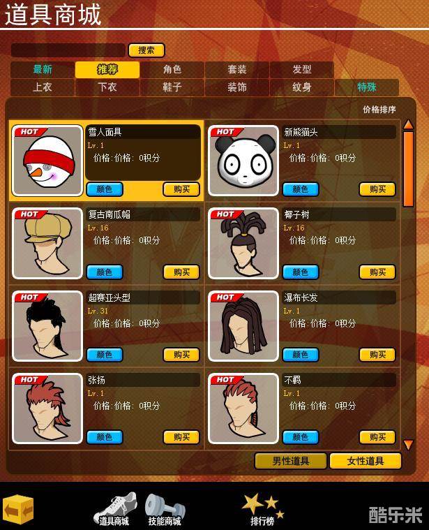 2013频道中的商城中的道具均为0点券,0积分,玩家可以免费进行购买。