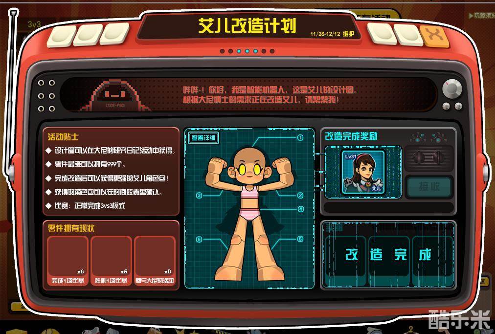 艾儿设计图可以通过大尼的研究日记中获得,获得的艾儿角色包在12月12日服务器维护后可在公服创建。完成全部改造的艾儿创建时可额外设置3点能力值,拥有3个专用动作。(投篮,篮板,正面防守)