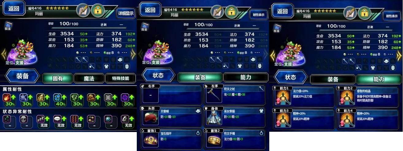 玛丽:只用2x“抗狂水”,“抗垒石”增加抗性(比“全心全意”省魔)