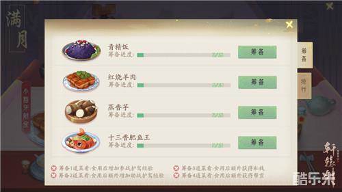 自11月20日起,少侠可以通过满月活动页面参与帮派宴会活动,化身“云山小当家”按每日随机生成的菜单筹备帮派佳肴。玩家制作菜肴的品级评价将影响帮派筹备进度,优质品级可大幅提高筹备进度,每日达成筹备进度后可以在当晚19:30成功开启帮派宴席,与好友共度欢庆时刻。在品尝美味佳肴、载歌载舞时也可获得个人属性加成等奖励,更有隐藏任务等待少侠触发!