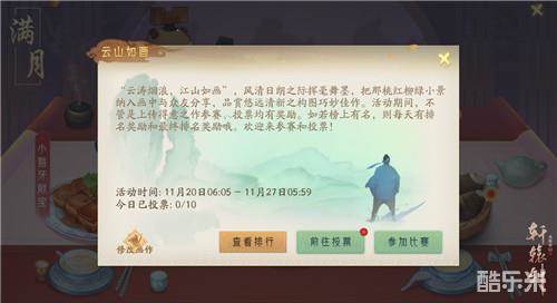 爱好行当玩法的少侠,只要满40级并开启挥毫舞墨玩法,便可参与云山如画活动。创作独一无二的画作,与好友挥毫舞墨共诉情怀。每日活动排名前五十与最终活动总排名前百的玩家均有机会获得未鉴定素材奖励。人住小桃源,以笔画眼中之景,分享心中之美。还可参与每晚的拉票红包环节,巨型福利等你前来赢取!