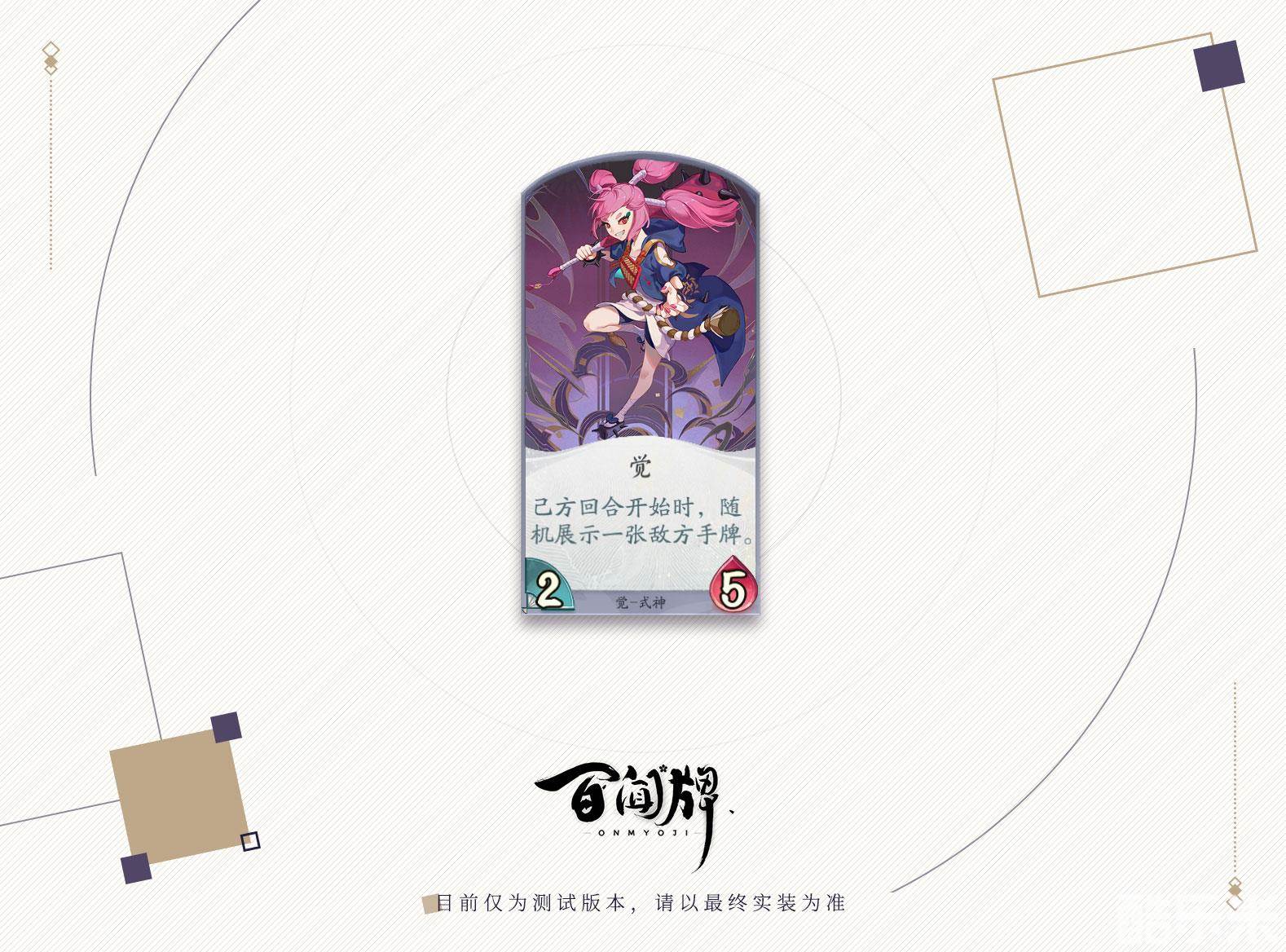 在己方回合开始时,觉能随机观看对手一张手牌,除了能获取敌方手牌情报之外,还能搭配其功能性卡牌,进一步妨碍对手行动,是一名功能强大的控场型式神。