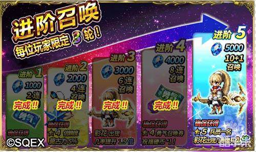 —进阶5——10+1次召唤+确保获得 1名5星兵员+彩花出现几率提升2倍