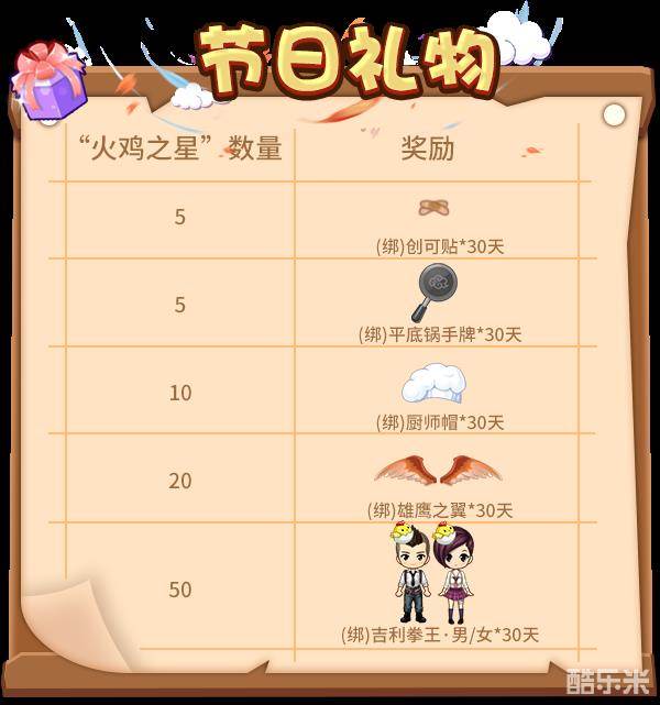 4. “火鸡法杖”是整蛊道具,接收后将会把玩家变为一只“呆萌的火鸡”,在活动期间允许对“BOSS”使用。