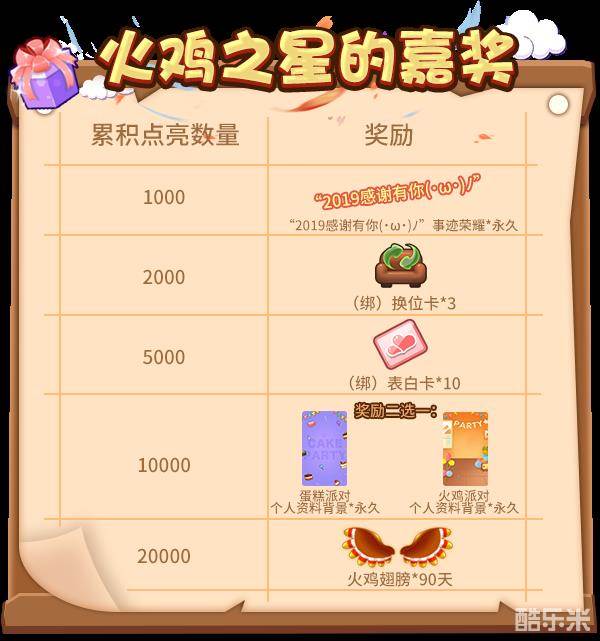 除此之外,每一只茁壮成长的火鸡都能够根据主人的“米粒”数量,在“火鸡排行榜”中进行排名,活动结束后,位于排行榜前10名的玩家都能够获得嘉奖!