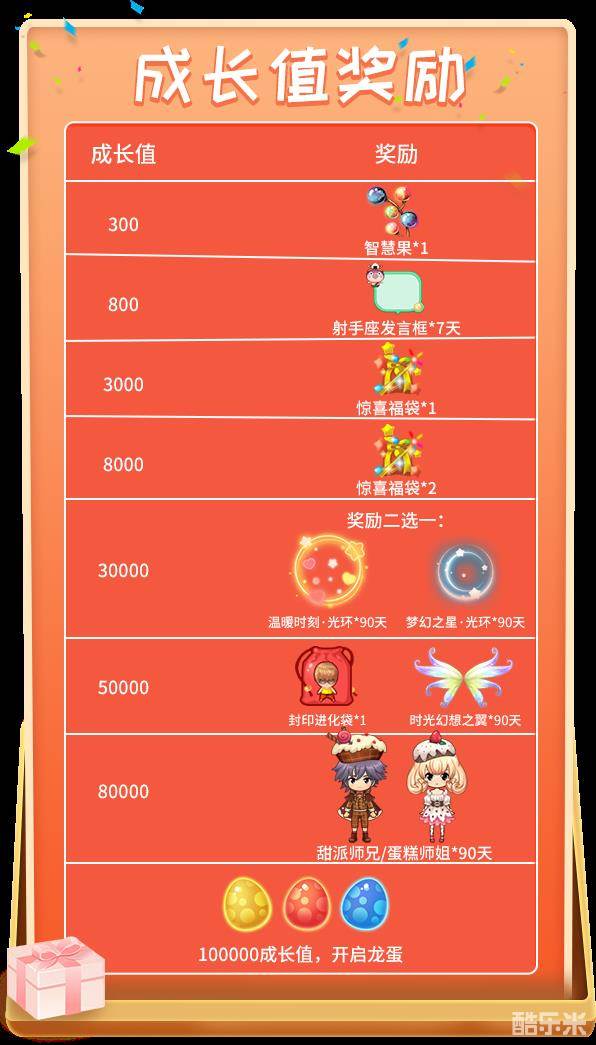 每消耗1金币或每增长50积分即可获得1成长值,当达到一定成长值后,就解锁对应奖励。