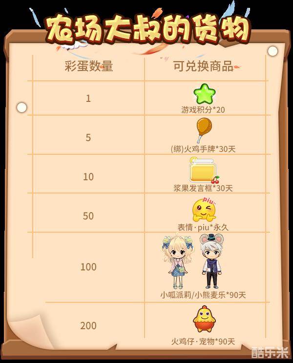 彩蛋可是非常珍贵的哦!在活动期间,您可以使用“彩蛋”去找“农场大叔”兑换精美的商品:
