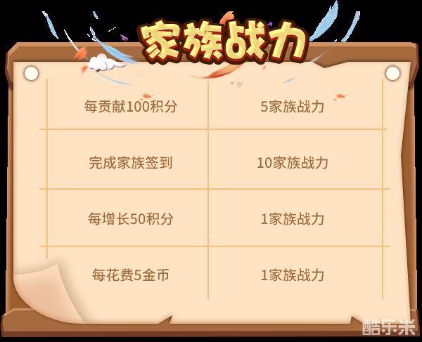 活动期间,每个家族的成员都可以通过以下方式获得“家族战力”: